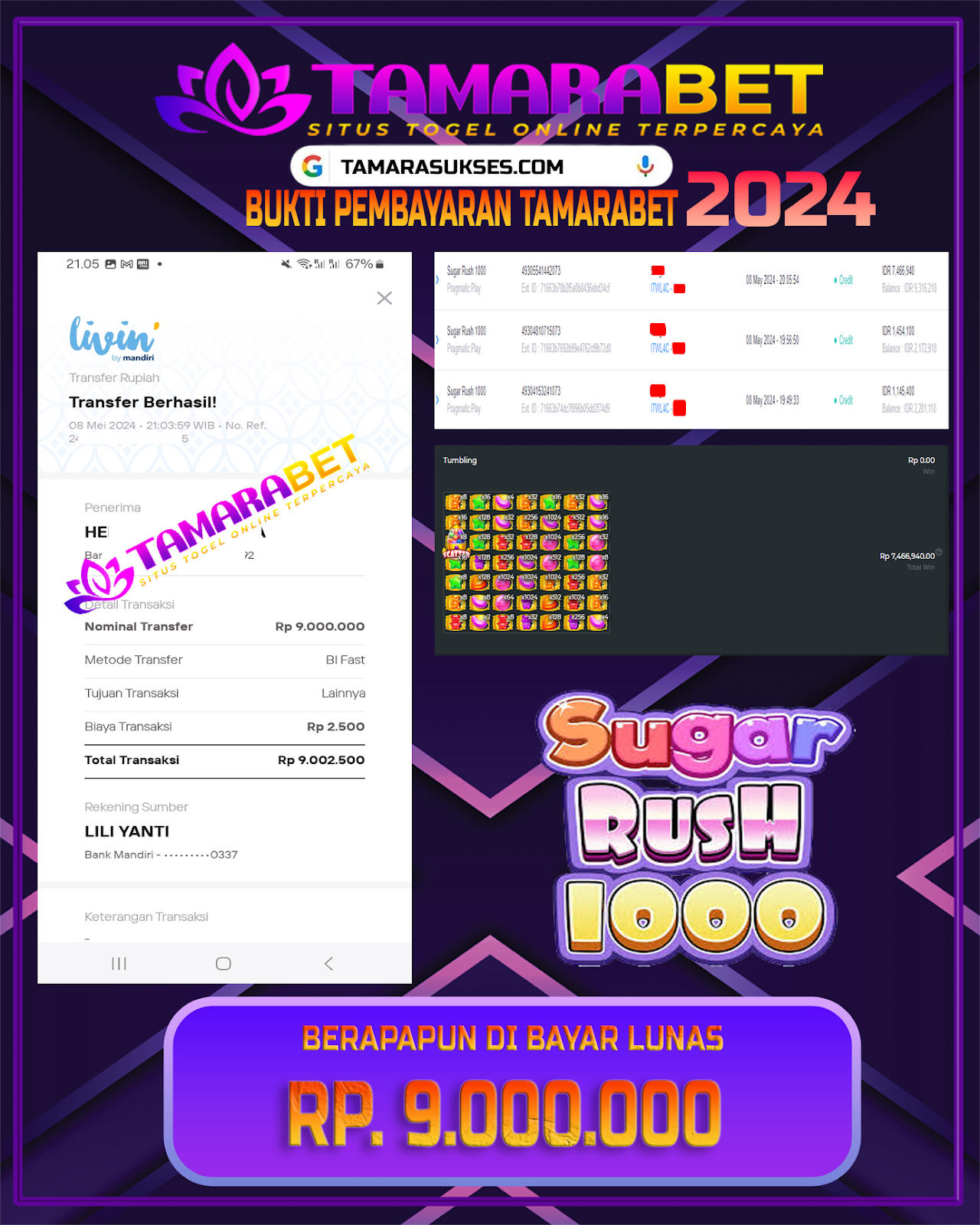 TAMARABET DIBAYAR LUNAS SECEPAT KILAT !!! 15/05/2024. RP. 23.500.000