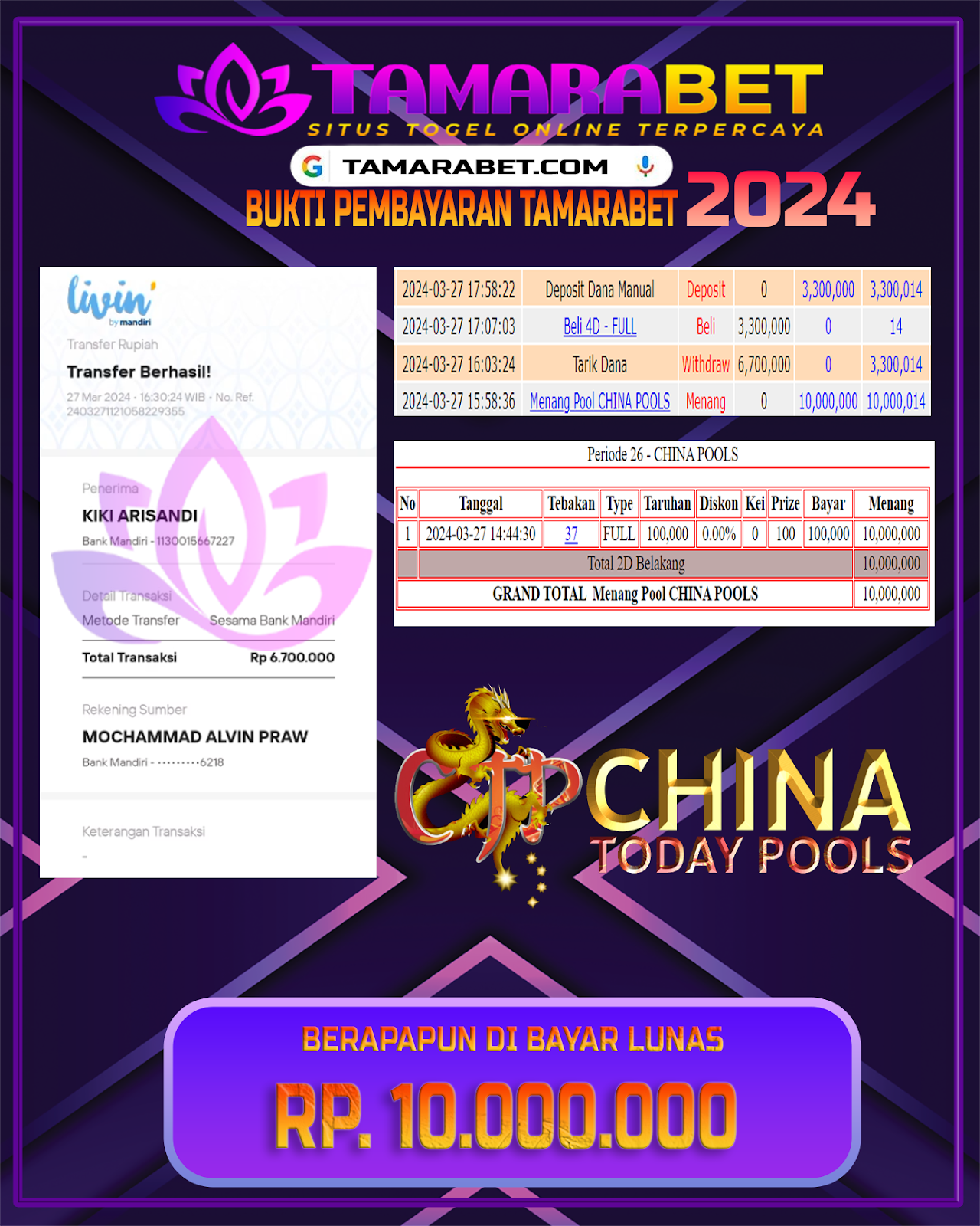 TAMARABET DIBAYAR LUNAS SECEPAT KILAT !!! 28/03/2024. RP. 6.700.000